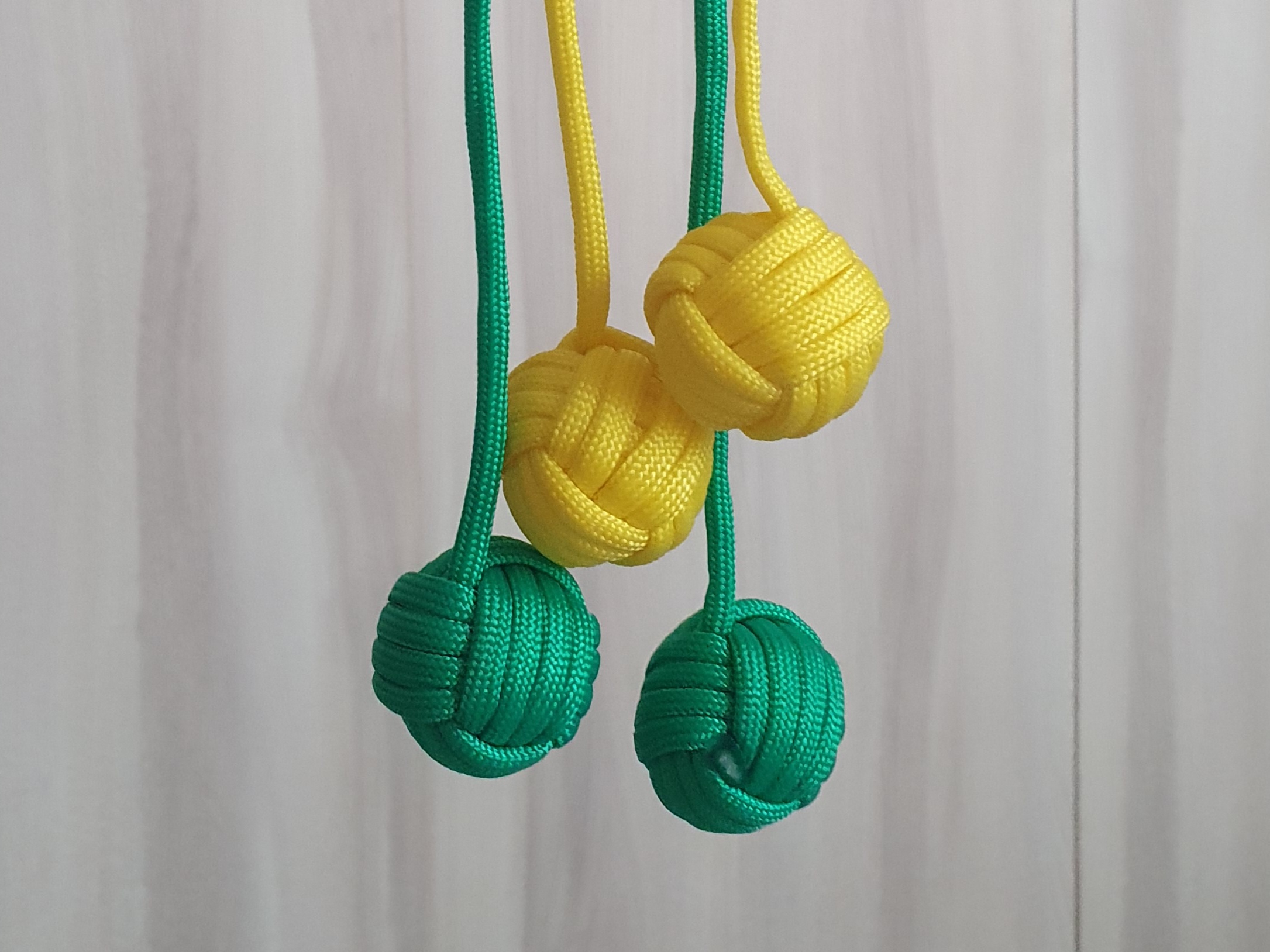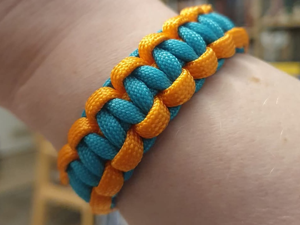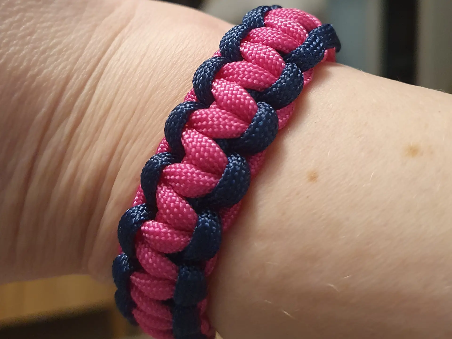 Zakładka wypleciona z linki paracord. Na obu końcach zakładki są kulki.